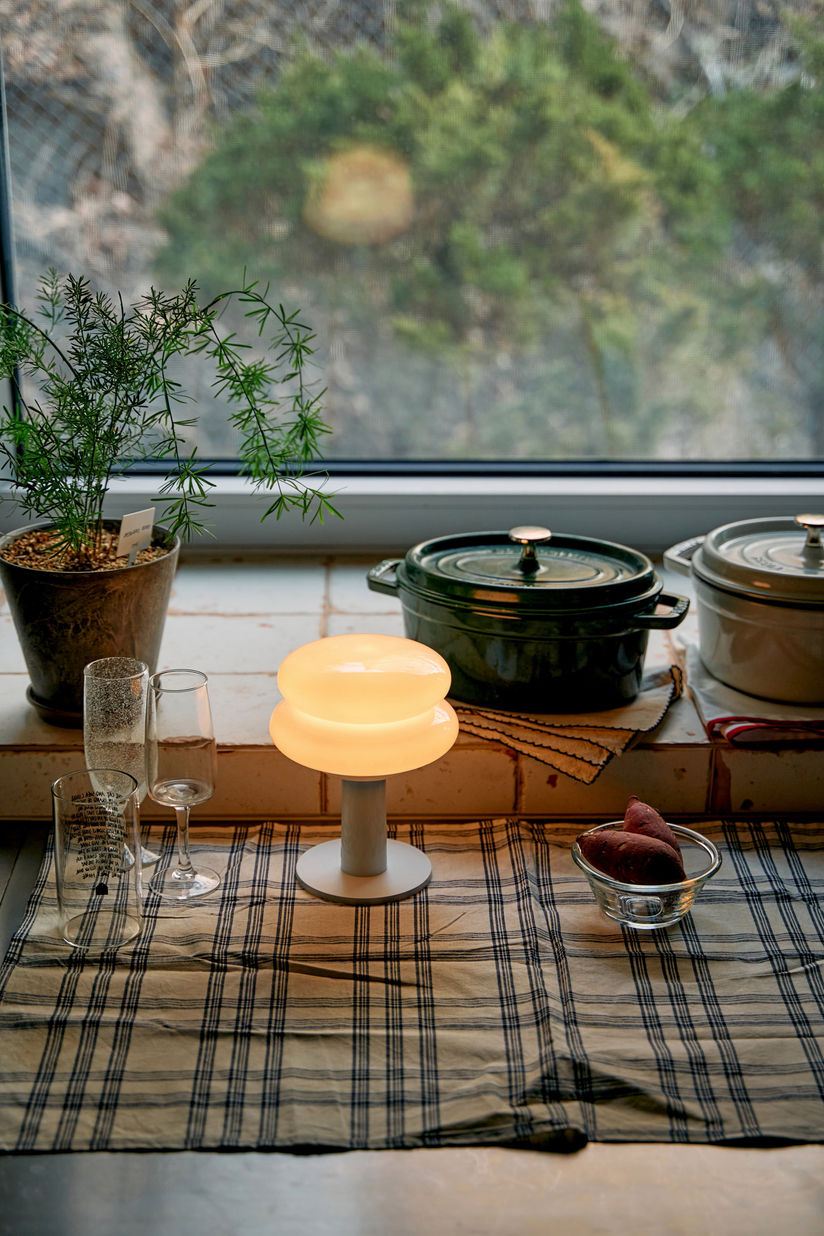 独特のキャラクターと愛らしい佇まいをもつ SNOWMAN ファミリーに加わった SNOWMAN 15 ポータブルは、独創的なデザインと機能を採用した ILKW 初のモバイル式の照明です。キュートなサイズながらシェードと支柱の絶妙なバランス。これらをシグネチャーカラーである BUTTER をはじめとした爽やかなカラーリングで包み込んでいます。SNOWMAN のアイコンとなるシェード (φ150mm) は日本のテイジン株式会社が開発した「リミテッド・ポリカーボネート」樹脂 を採用。一般的なポリカーボネートに比べて形状の耐久性・耐燃性・透過性に優れ、シェードに反映する光をより均一にして美しい外観を演出します。 1回の充電で最大 170時間(明るさ20%時)動作可能な内蔵充電池、USB-Cポート、3段階の明るさ調節が可能なタッチスイッチ、2段階のタイマー、3段階の充電インジケーター、ローバッテリーサインを備えています。