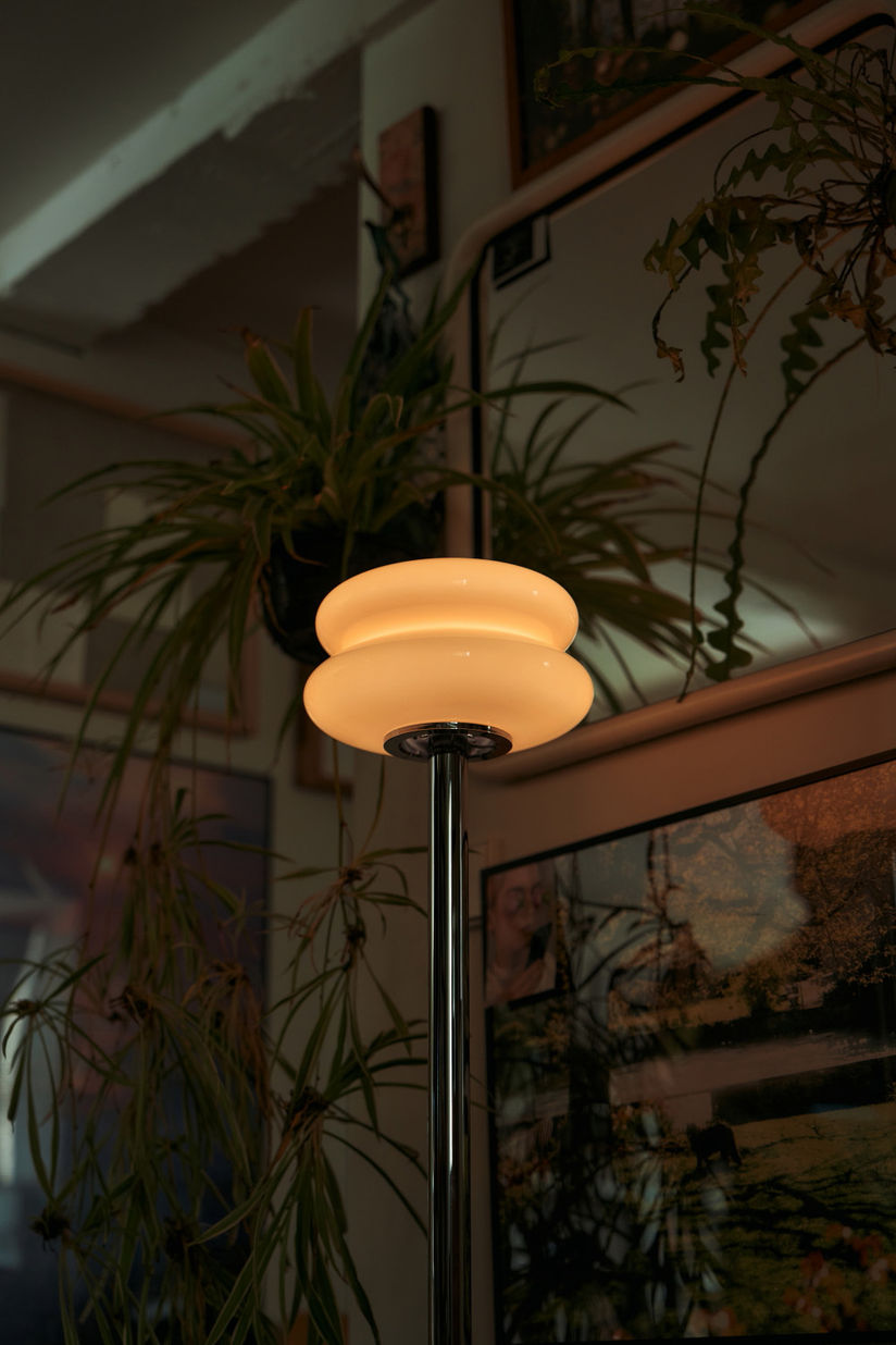 独特のキャラクターと愛らしい佇まいをもつSNOWMAN 22 TABLEと同じスケールのシェードをもつコンパクトなフロアランプバージョンです。