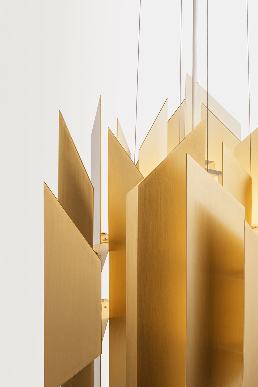 「DIVAN2」は1877年にNIMB夫妻によってコペンハーゲンのランドマークであるチボリ公園の湖畔に創業された歴史的なレストランの名称です。 1962年、このレストランのリニューアルの依頼を受けたサイモン P・ヘニングセンは、公園の湖面に落ちる夕日と細波によって輝く光のハレーションをコンセプトに、エッジの効いたスラットを効果的に配置した演劇的なペンダントを作り出しました。 非常に個性的で圧倒的な存在感を放つこのペンダントは光のカスケードとも称され、後にジョージ・ジェンセンのショップアイコンとなりました。