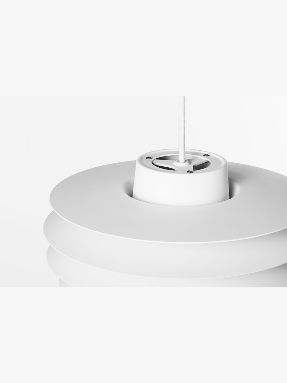 「VERONA」は時代を超えた優美さとシンプルさを兼ね備えたペンダントランプです。特徴的な8枚の円形シェードの間からグレアフリーの柔らかな光をもたらし、消灯されていてもそのフォルム自体が印象的な装飾として存在感を放ちます。デンマークでは1930年代から建築的、光学的なアプローチによりグレアコントロールされたマルチシェードの照明が数多く開発されましたが、それらのなかでもVERONAのシンプルな構造とすっきりとした水平基調のラインは独特の安定感とエレガンスを醸し出し、高い評価を得ていました。VERONAは40年前と変わらない魅力をもって、いまもなお多くのコレクターからの支持を集めています。