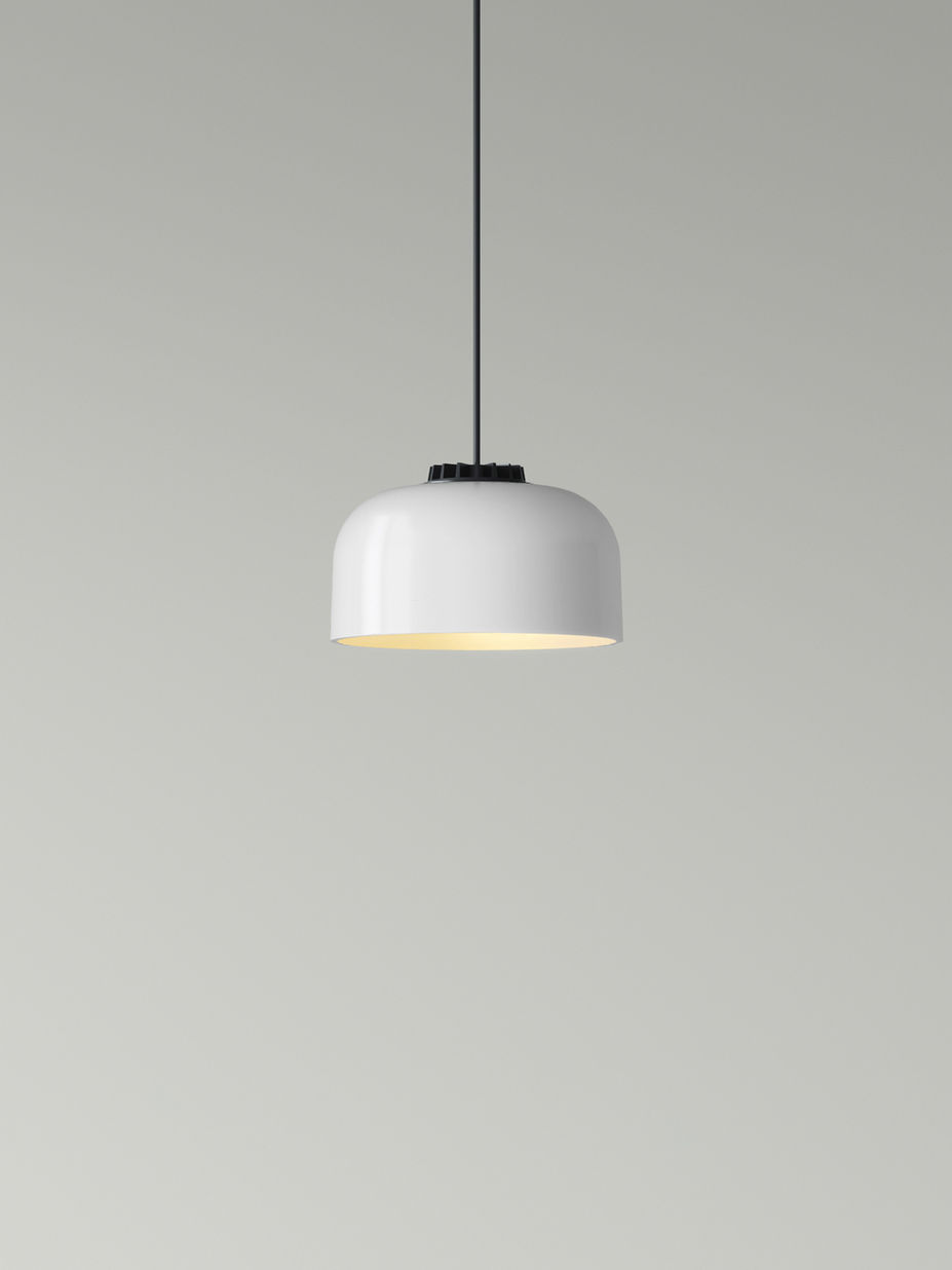 セラミック製のシェードは曲線の丸みと艶感から、まるでカフェオレボウルのようなやわらかな印象を与えます。 サイズ展開はSサイズとLサイズとなりますが、同じサイズで複数吊ったり、サイズ違いでレベルを変えて吊り下げることもできます。 キッチンスペースやダイニング、洗面所のスペースにとてもよく似合いそうです。